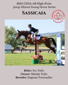 The CSHA Alberta Chapter is proud to sponsor the High-Point Award for the Jump Alberta Young Horse Series. Congratulations to the 2025 recipient